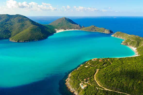 A la hora indicada pasaremos a recogeros por vuestro hotel de Búzios y pondremos rumbo a Arraial do Cabo. Después de un trayecto de dos horas y media, alcanzaremos esta localidad de playas de arena blanca y aguas turquesas que os enamorará desde el primer instante.