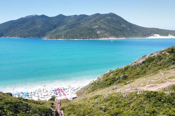 Une fois arrivés à destination, vous vous dirigerez vers la plage de dos Anjos. Un bateau vous y attendra pour vous emmener en croisière afin d'admirer la beauté d'Arraial do Cabo depuis l'eau.