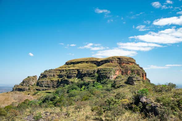 Peu à peu, vous apercevrez au loin la colline de São Jerônimo, impressionnant point culminant du parc national de la Chapada dos Guimarães. Saviez-vous que son nom d'origine est Bokodoriri ? Ce mot indigène signifie tatou géant. Ouvrez l'œil ! En regardant depuis la plaine, il est possible de voir qu'elle a la forme particulière d'un tatou.