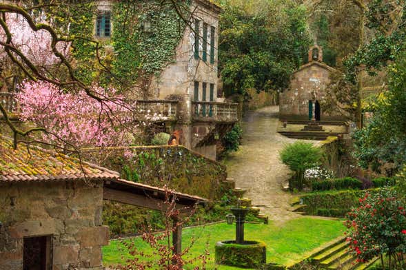 Vous visiterez d'abord la chapelle du Pazo do Faramello. Dans cet oratoire, déclaré Bien d'intérêt culturel, vous contemplerez un magnifique retable sculpté par le maître baroque José Gambino. La visite du pazo se poursuivra dans ses jardins français romantiques du XIXᵉ siècle. Vous y verrez une ancienne croix de pierre et le toit vert de l'ancienne usine royale de papier, dont vous verrez également les moulins industriels.