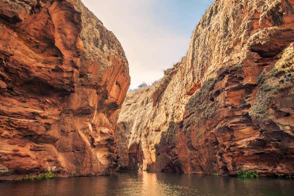 Una volta arrivati, ci imbarcheremo per un giro in barca lungo il canyon di Xingó, durante il quale navigheremo tra spettacolari pareti di roccia rossastra che, in alcuni punti, raggiungono un'altezza di 50 metri… Preparate la macchina fotografica!