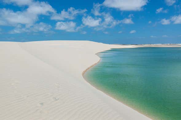 Una volta arrivati, cambieremo mezzo di trasporto, saliremo a bordo di un fuoristrada e intraprenderemo un tour del Parco Nazionale dei Lençóis Maranhenses, in cui vi divertirete a scorrazzare tra le alte dune del posto. Farete alcune soste strategiche, in diverse lagune, come quella di Gaviota o Andorinha... Potrete fare un bagno nelle loro acque cristalline!