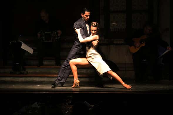 Durante la prenotazione, vi daremo l'opzione di completare la vostra esperienza con una deliziosa cena a base di piatti tipici argentini. Aljibe Tango offre un menù alla carta che include un antipasto (empanada criolla, zuppe o insalate), un piatto principale (bife de chorizo, carne vaccina, pollo o pasta) e un dessert (flan o gelato). In più, potrete accompagnare la cena con un vino della cantina San Telmo.