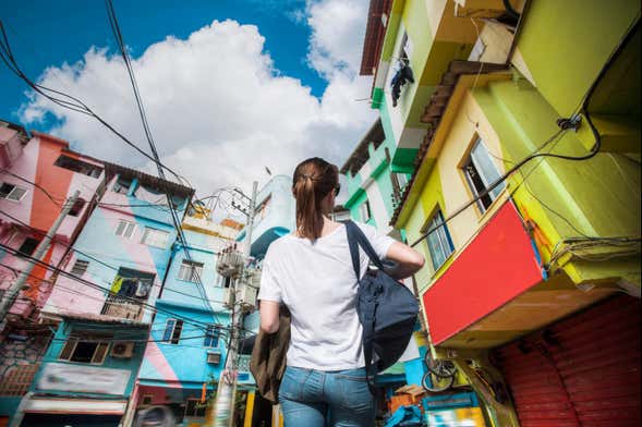 Una volta giunti a destinazione, cominceremo a passeggiare e a parlare delle case di questa favela in cui vivono 8.000 persone. Contro ogni pregiudizio, scopriremo i numerosi progetti educativi che si sono sviluppati in quest'area. In più, visiteremo il centro artistico di Santa Marta, il campo da calcio e contempleremo i murales di arte urbana e le case colorate.