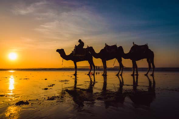 No horário indicado, passaremos para buscá-lo no seu hotel para entrar no pequeno deserto árido de Agadir. Nesta atividade, conheceremos um dos meios de transporte mais antigos do mundo: o camelo.