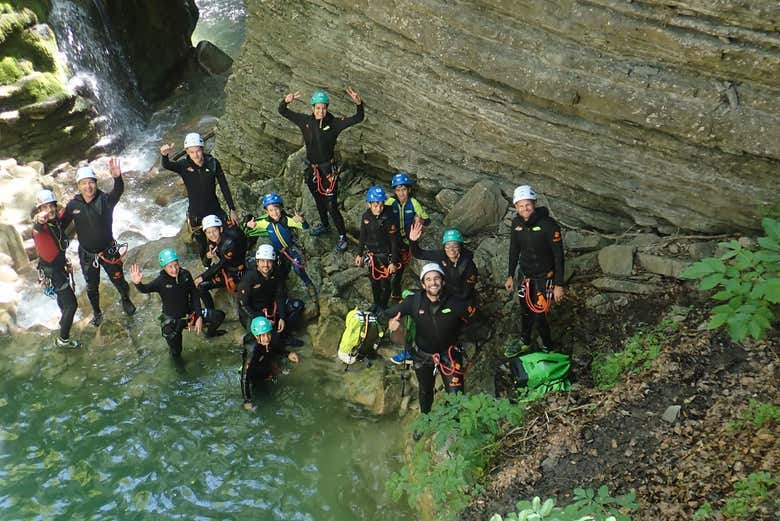 Com o equipamento posto, iniciaremos a descida pela parte interna de um impressionante desfiladeiro do rio no coração do Pireneu aragonês. O que você acha da paisagem ao seu redor? Com a ajuda de cordas, você superará grandes declives enquanto desfruta desta aventura. Desceremos rampas naturais, escalaremos rochas, pularemos em piscinas de águas cristalinas e, claro, nos divertiremos muito!