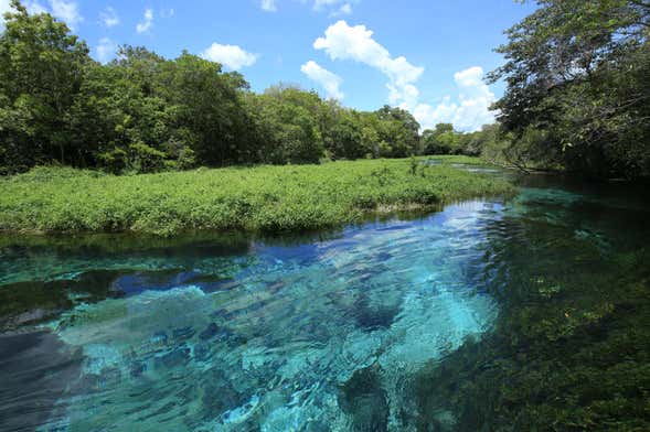 Nesse ponto situado a 17 quilômetros de Bonito, embarcaremos em um barco elétrico para percorrer esse rio de águas cristalinas. Ao longo dos 1.300 metros de trajeto, poderemos relaxar enquanto avistamos a fauna e a flora da região.